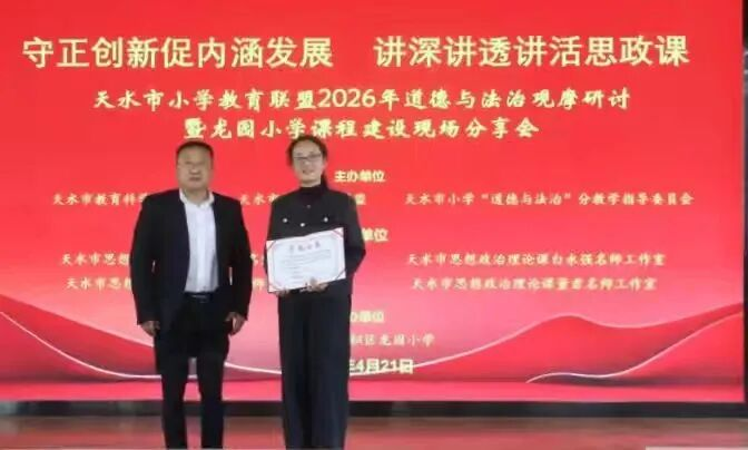 17时20分,整个活动圆满结束。本次活动集课堂展示、成果参观、专题引领、专家点评、研讨交流、总结表彰于一体,环节紧凑、内容丰富、成果丰硕,有效推动了新课标理念落地生根,提升了思政教师专业能力。今后,天水市小学教育联盟将持续搭建教研交流平台,深化思政课改革创新,守正创新、培根铸魂,为培养担当民族复兴大任的时代新人贡献力量。