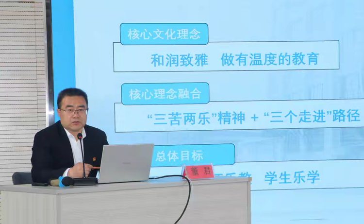 董书记重点介绍了学校“国家课程校本化、校本课程特色化、德育活动课程化”的实施思路,围绕课程目标、课程结构、课程内容、实施路径、评价方式、保障机制六个维度,全面展示了学校在道德与法治课程融合、校本课程开发、学科德育渗透、校园文化浸润、实践活动育人、构建家校社教联体育人新格局等方面的创新做法与丰硕成果。